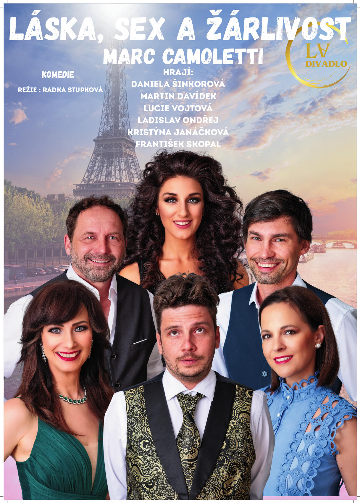 Co má udělat manžel, který zjistí, že ho jeho nevěrná manželka podvádí? Může svého soka zabít jako v romantických dobách. Může ho nechat zabít, jak se to dělá v dnešní „akční době“. Nebo mu může oplatit stejnou mincí: totiž na oplátku svést jeho věrnou ženu. V Camolettiho komedii Láska, sex a žárlivost se setkáme se zápletkami důvěrně známými z vlastního manželství. Navíc budeme překvapeni, jak mistrovsky se budou rozvíjet. Komedie plná italského temperamentu, francouzského šarmu, manželských nedorozumění a „rafinád“, ale především spousta legrace.